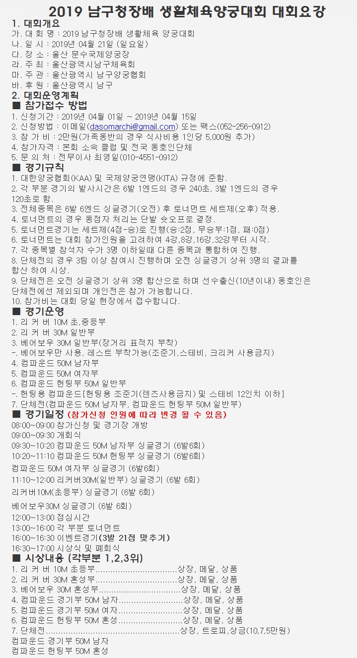2019 울산 남구청장배 생활체육양궁대회