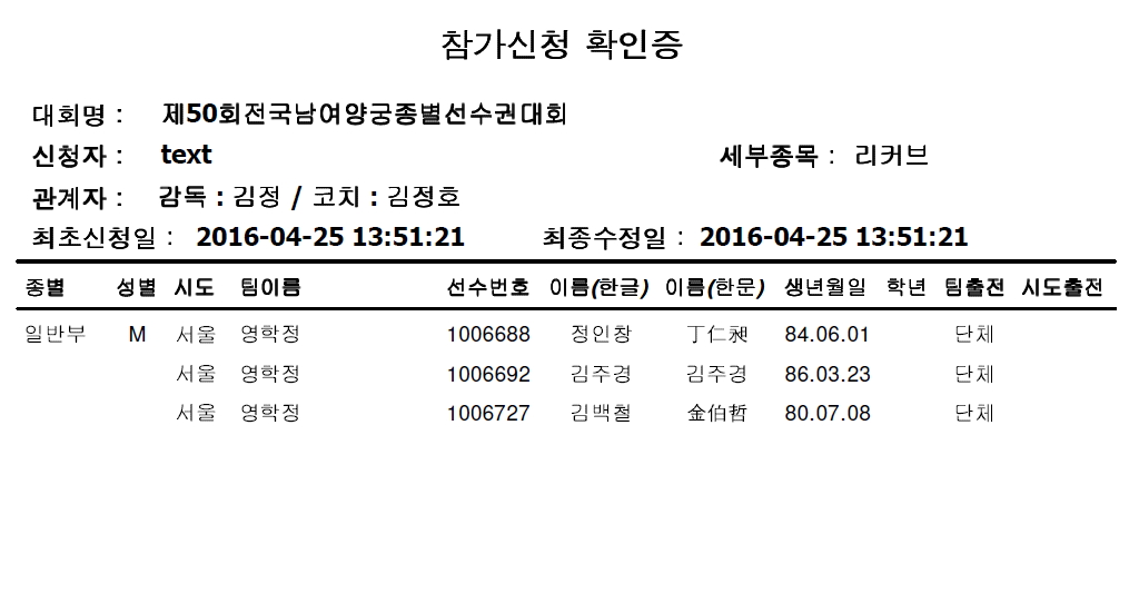 제50회 종별선수권신청