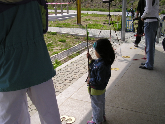 아빠에게 화살을 하나씩 건네고 있네요!! 아빠는 김범준씨입니다.