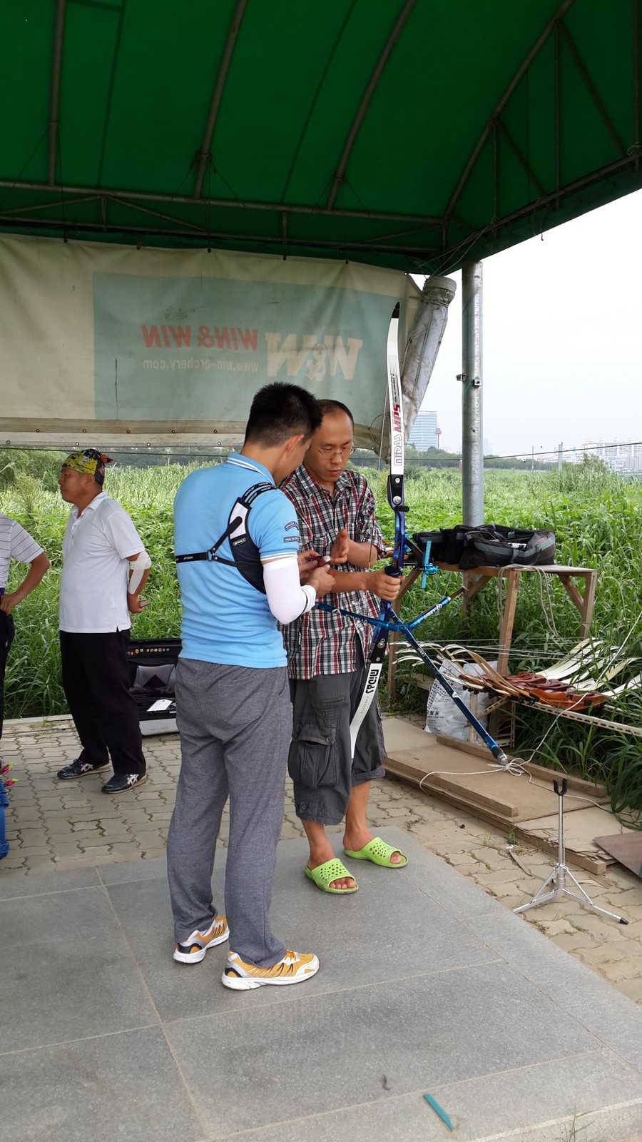 체험하러 오신 분께 활 보여드리는 광우